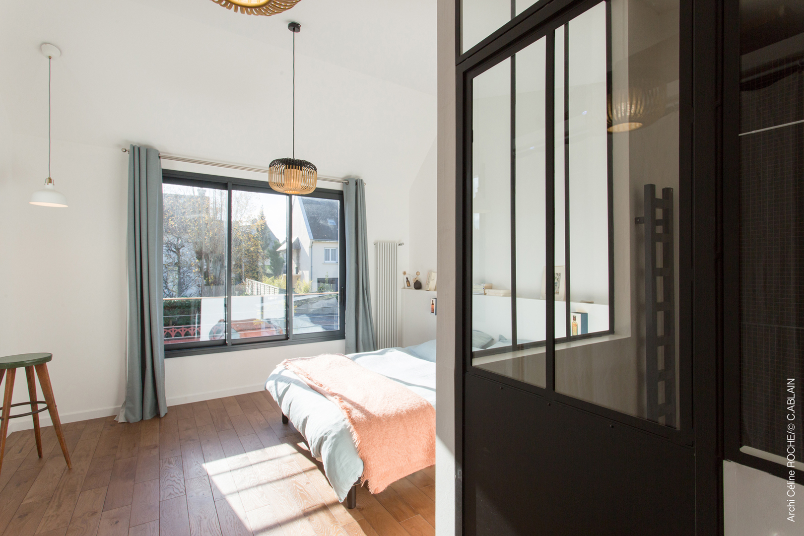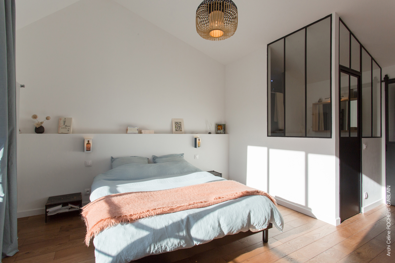 Protégée par un bastingage en zinc, elle crée une relation intime entre intérieur et extérieur, entre la chambre et le ciel.
