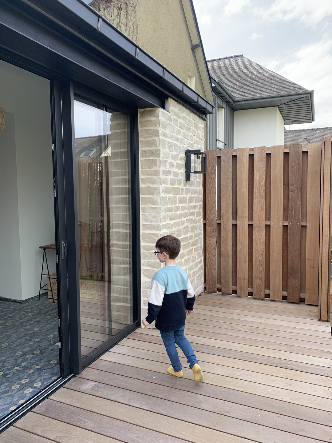 Au rez-de-chaussée, cette extension accueille une family room conviviale, ouverte sur la terrasse.