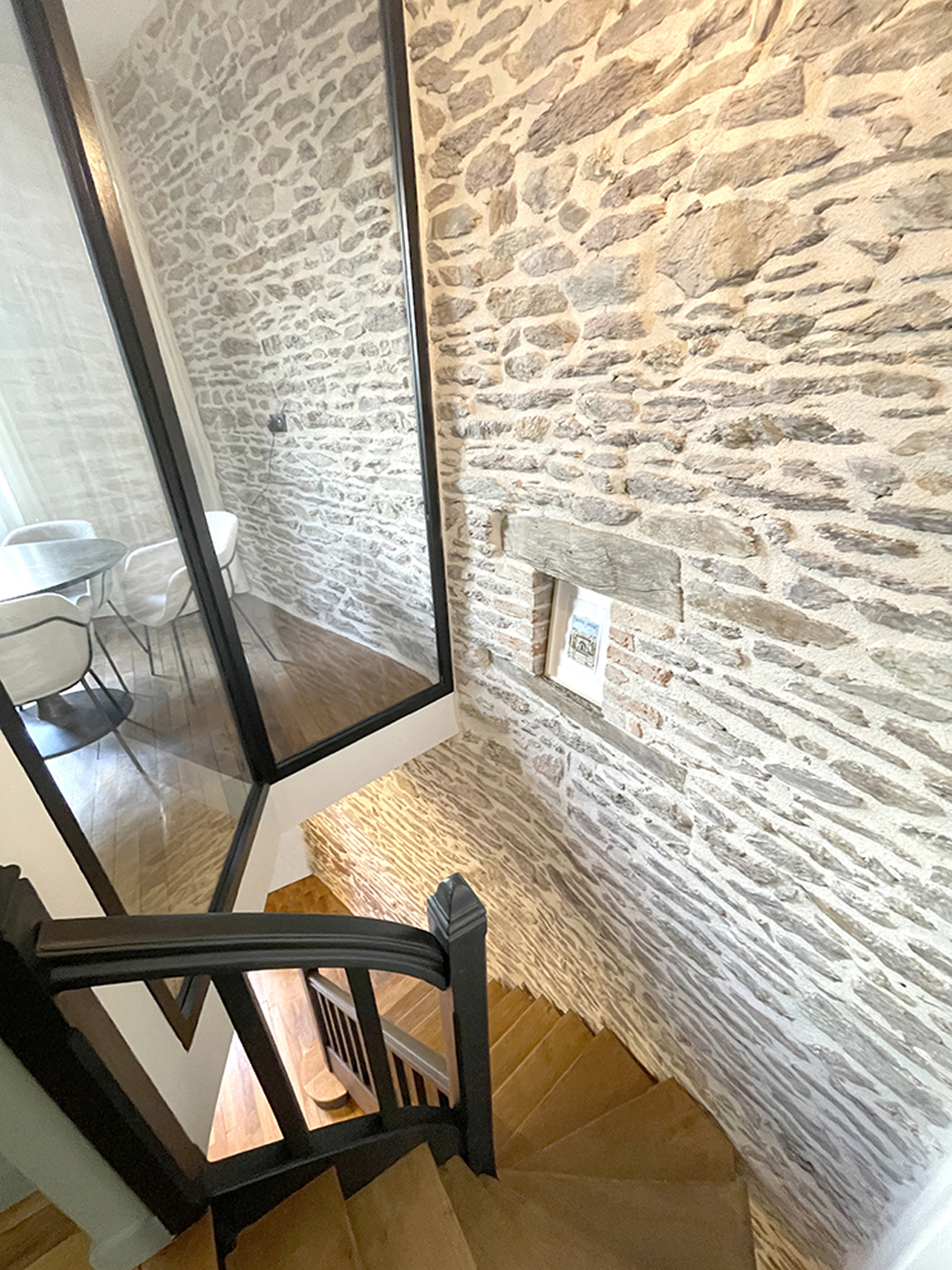 Les joints de pierre ont été repris à la chaux et au sable, assurant une respiration naturelle du bâti.